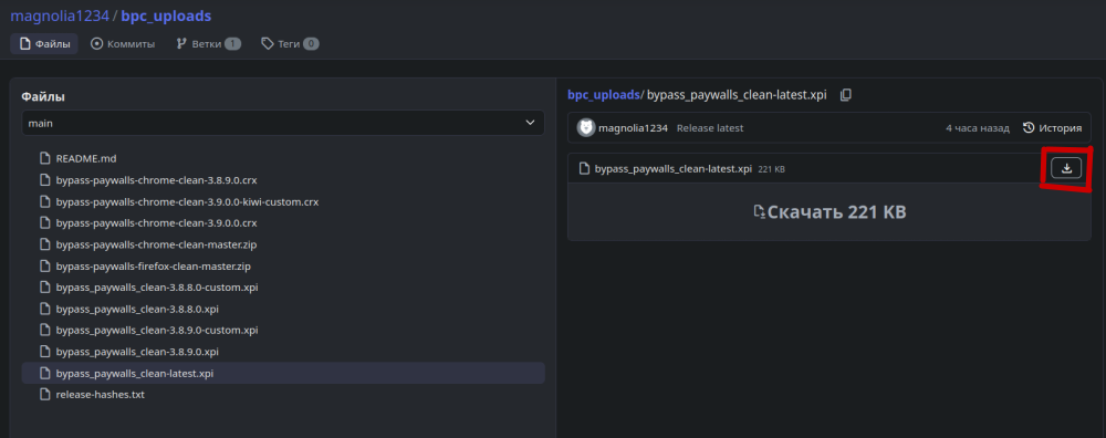 Tout d'abord, se rendre à l'adresse du code de l'extension et cliquer sur le fichier bypass_paywalls_clean-latest.xpi.